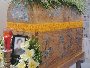 Là mẫu quan tài hỏa táng kích cỡ lớn, trang trí theo nghi thức tang lễ Phật Giáo. tang lễ công giáo hoặc tang lễ cán bộ cao cấp